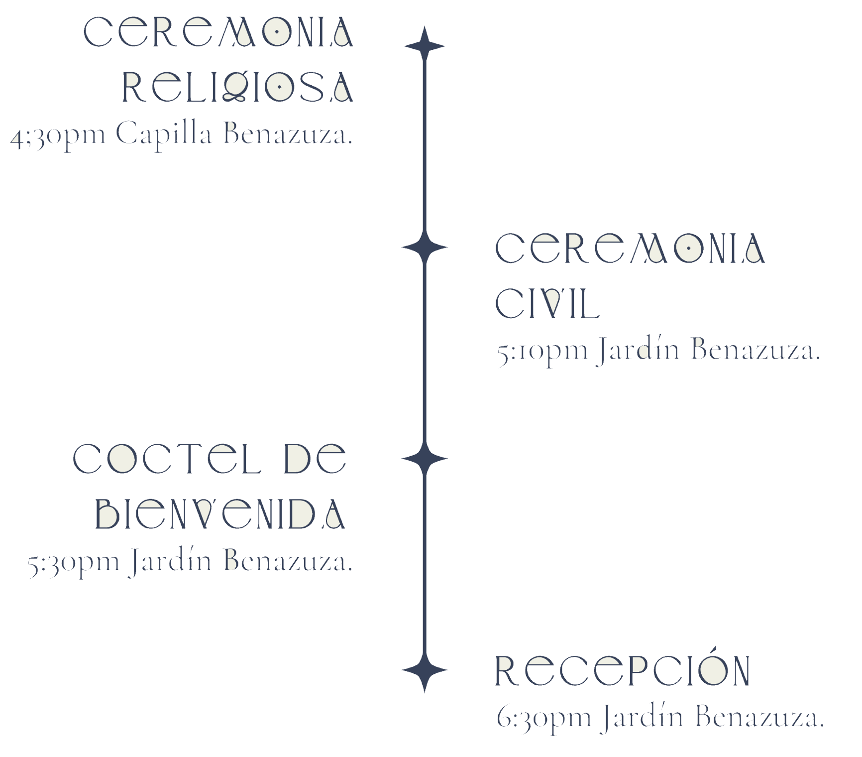 La boda será en jardín; para tu comodidad, te sugerimos evitar tacones muy finos.
